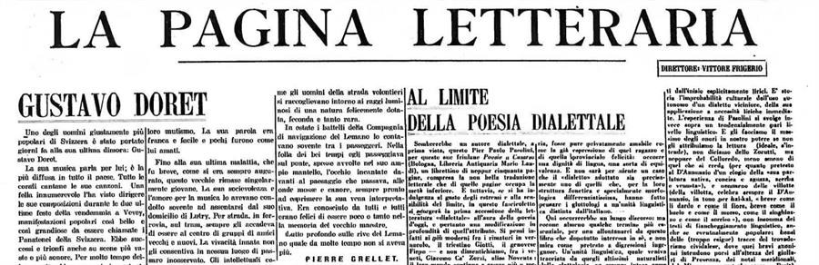 Contini, Gianfranco. Al limite della poesia dialettale. «Corriere del Ticino», sabato 24 aprile 1943. (Pagina letteraria).