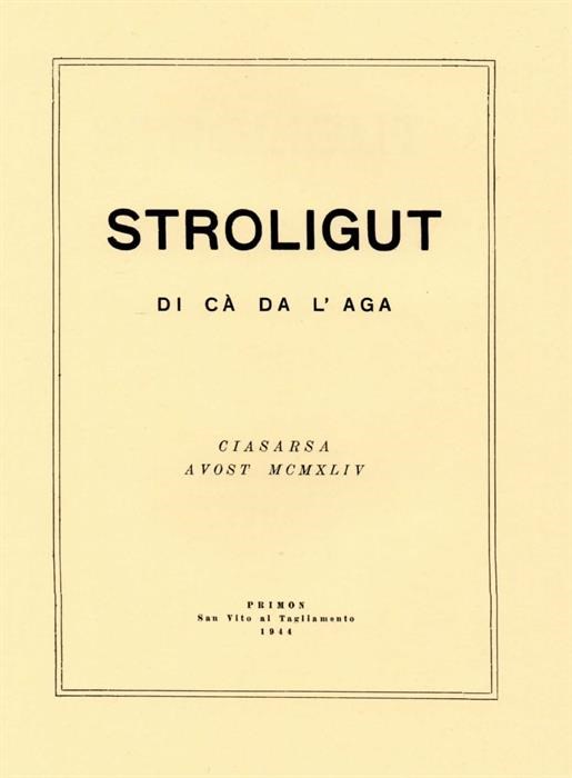 Stroligut di cà da l'aga: Ciasarsa, avost MCMXLIV. Ciasarsa: [s.n.], 1944, (San Vito al Tagliamento: Primon). 47 p., [1] tav., ill., 21 cm.
